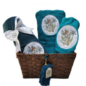 Canasto Toallas y manta Modelo Hadas color Turquesa