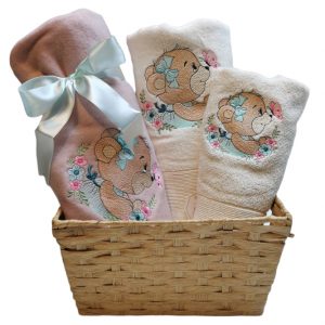 Canasto para la Ropa con leyenda Bordada color Cafe