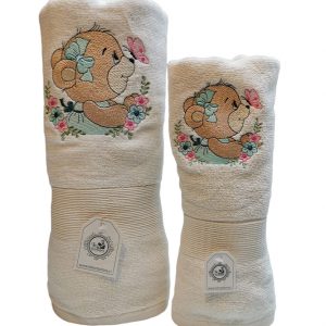 Toallas crema de Mano y Baño con diseño osita mariposa