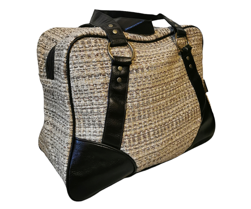Lo que hace que nuestro bolso de viaje sea realmente especial son los detalles en bronce. Las hebillas, tachas y carritos están elaborados con bronce de alta calidad, lo que le da un toque de elegancia y durabilidad al bolso. La combinación de tela y eco cuero le otorga una apariencia sofisticada y resistente, perfecta para acompañarte en todos tus viajes.