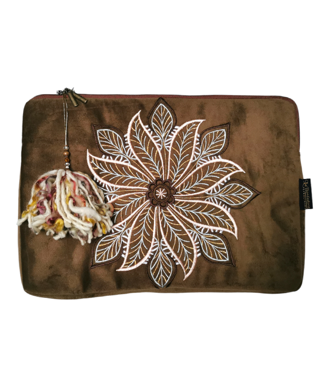 Bolso Portanotebook Café Mandala bordada 13 /14 /15 pulgadas