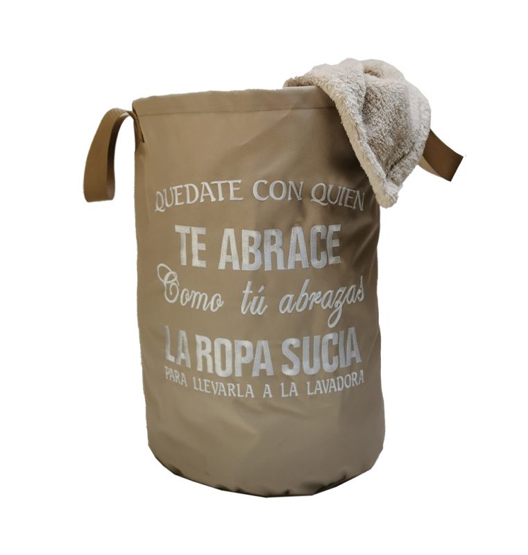 Canasto para la Ropa con leyenda Bordada color Beige