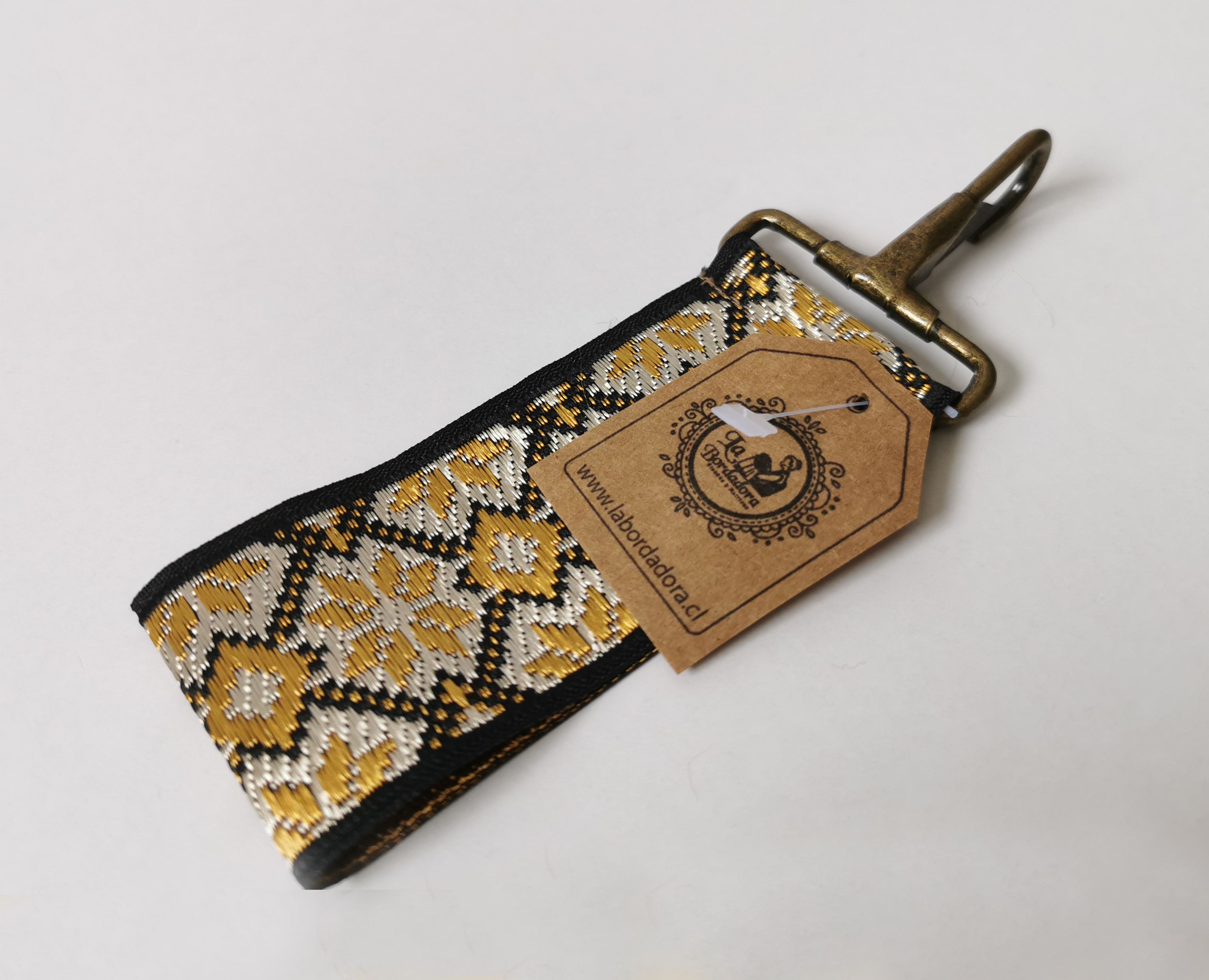 Llavero modelo cinta color mostaza con gancho para colgar. Hermoso y simple detalle para un presente o simplemente decorar tus llaves .