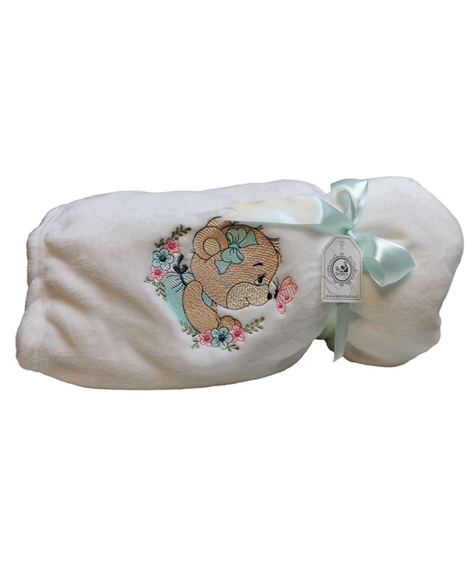 Manta de Piel diseño osita mariposa, sus medidas 125×150 , incluye nombre bordado , Manta Hecha en: China . Además Material principal: 100% Poliéster .Color: variado
