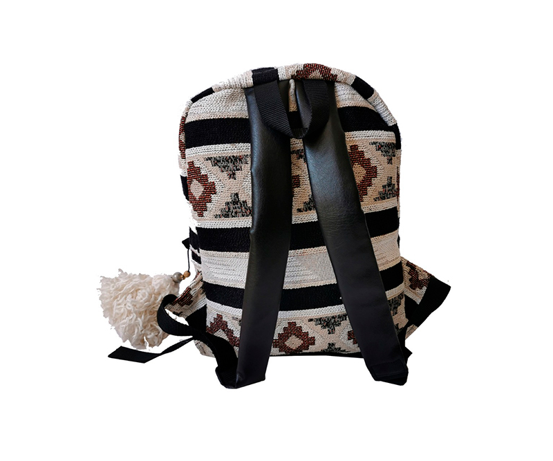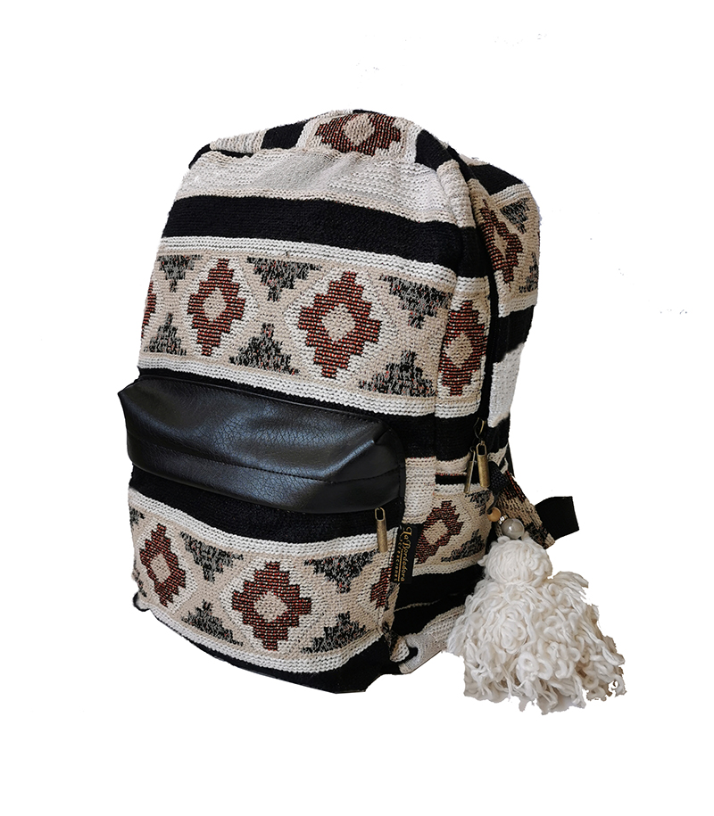 2 bolsillos laterales y un bolsillo al frente con cierre y además de material tela de tapicería lavable