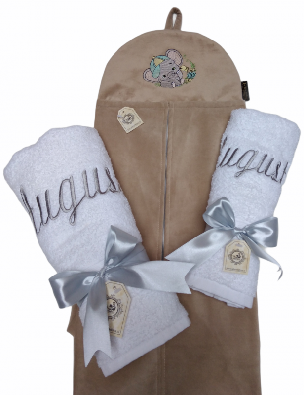 Pañalera de Felpa Modelo elefante y Toallas con nombre