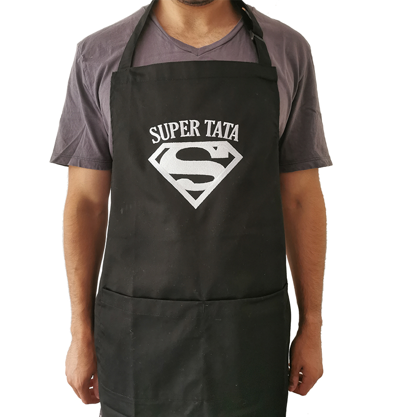 Pechera Negra de Gabardina con bolsillo . Además con diseño leyenda grande Bordada en el pecho . Tamaño único. Medidas de la pechera  Ancho : 62 cm mas tirantes y  Alto : 83 cm mas tirante. Tirante ajustable y con clip. Leyendas simpáticas y creativas para todos los gustos. La Pechera es un Regalo especial para los amantes de la cocina y la parrilla.