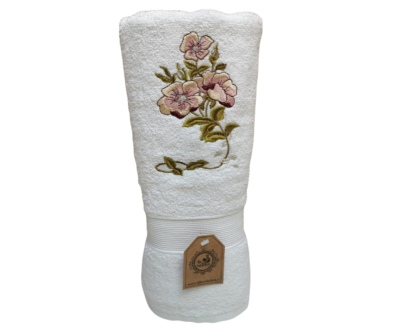 Toalla baño blanca con diseño Flor Bordada