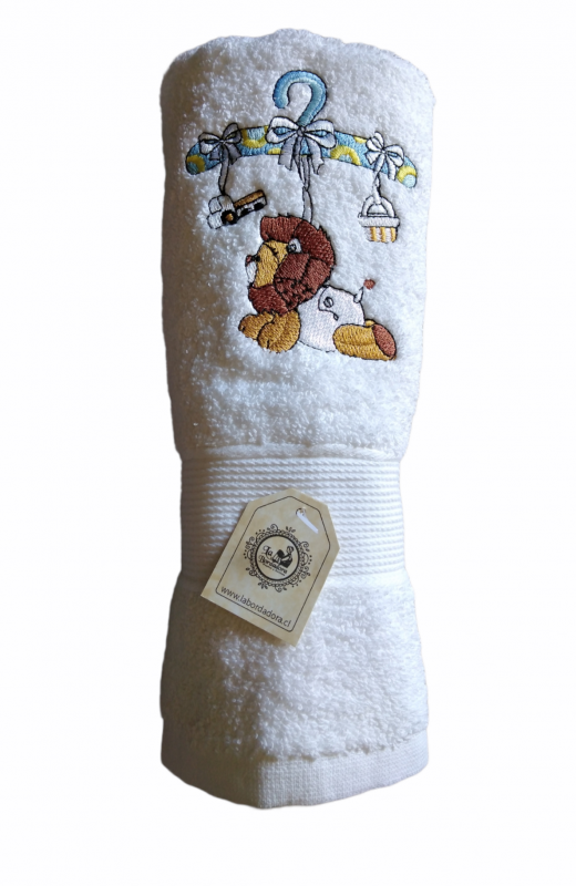 Toalla baño blanca con diseño león bordado