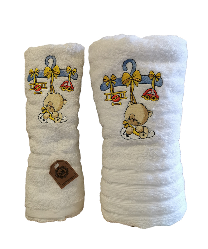 Toalla de baño 135 x 70 y de mano  60×85 cm, con diseño bordado .