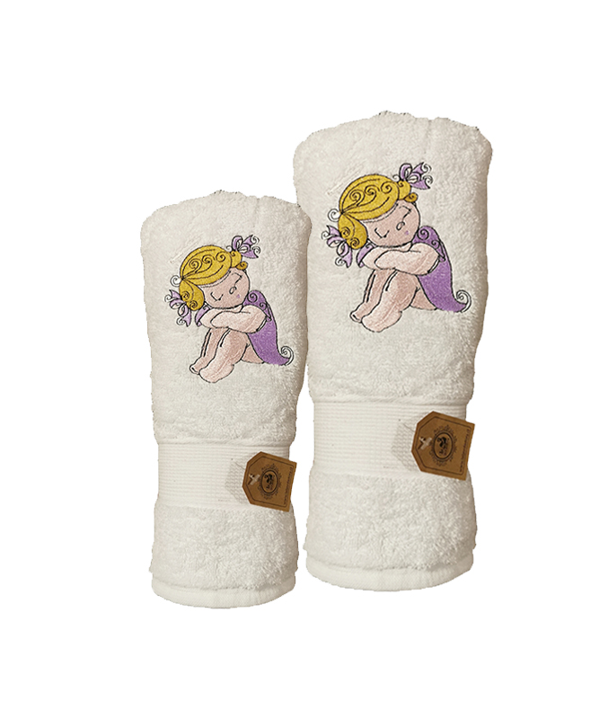 Toallas Blancas de Mano y Baño con diseño de niñita