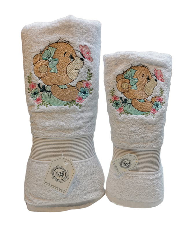 Toallas blancas de Mano y Baño con diseño osita mariposa