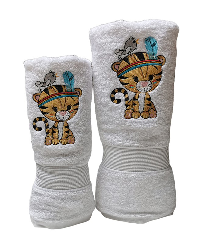 Toallas Blancas Mano y Baño con diseño de Tigre