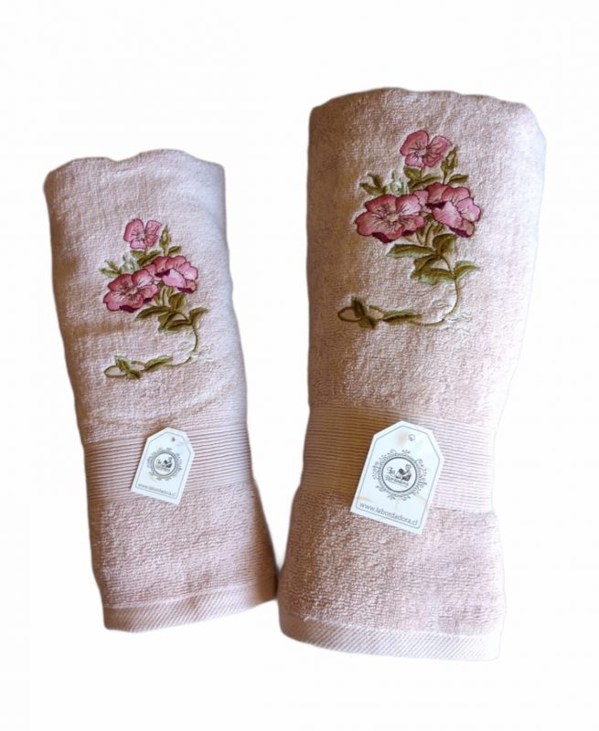 Toallas Mano y Baño Diseño flores palo de rosa disponible en  3 colores. (blanca, beige y rosa )