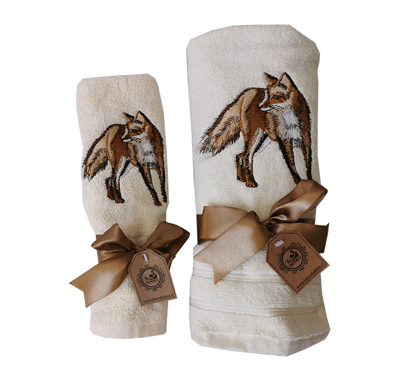 Toallas Mano y Baño Diseño Zorro disponible en Blanca y crema.