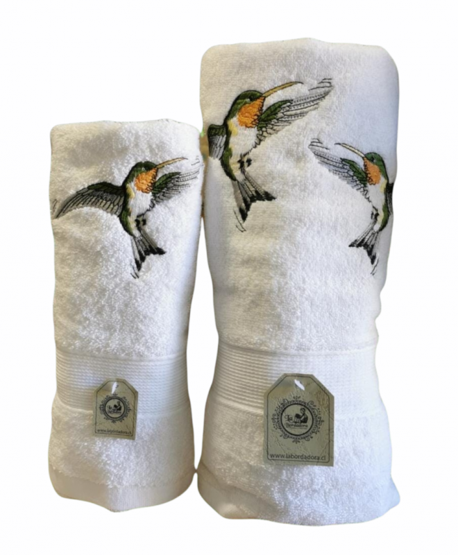Toalla de baño 135 x 70 y de mano 60×85 cm, con diseño bordado . Además Incluye nombre bordado. Sobre todo ideal regalo para los amantes de las aves.