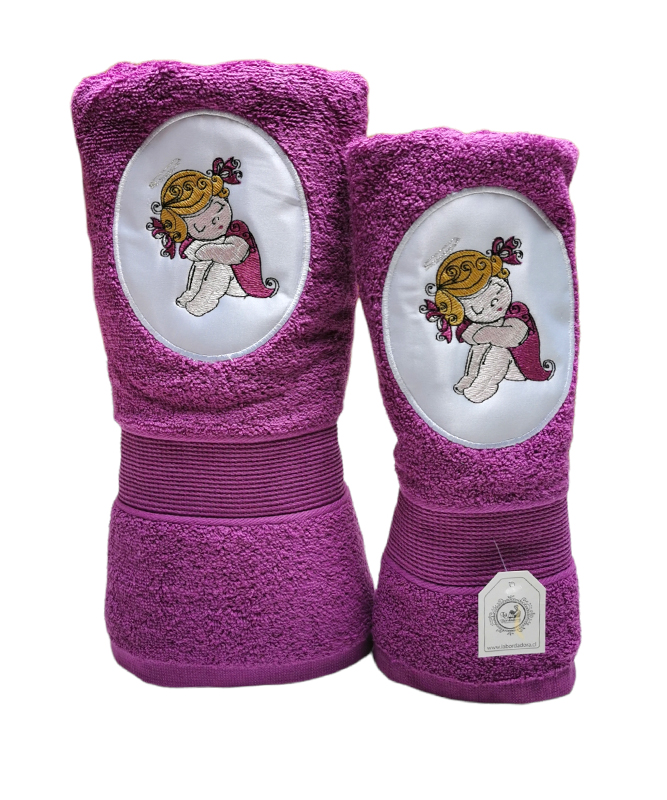Toallas moradas de Mano y Baño con diseño niñita sueños